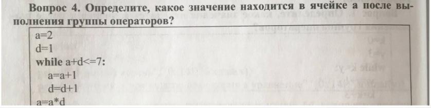 2) Цикл: пока a+d (3) меньше или равно 7 то