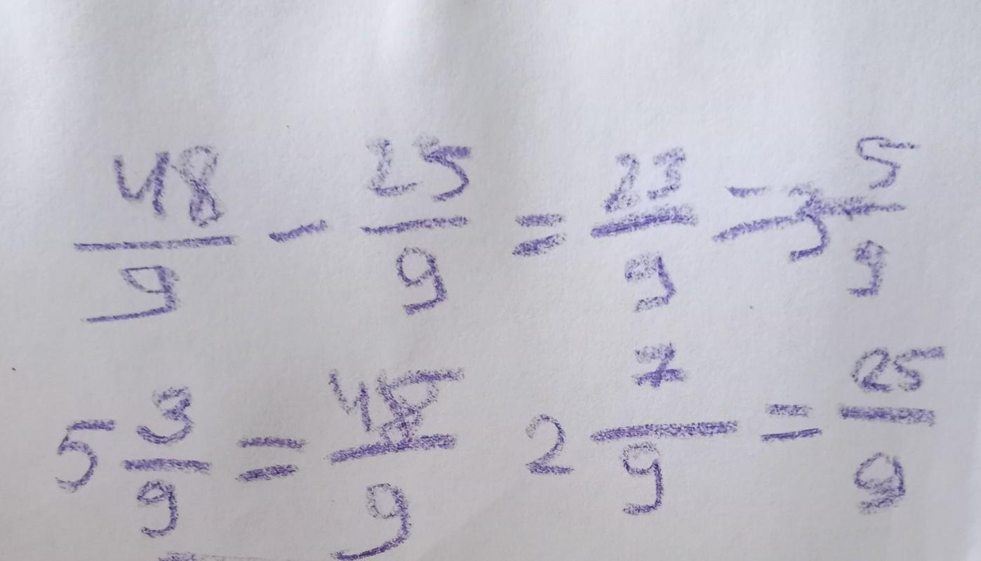 ну здесь я перевила дробь в не правельную дробь потом одной дроби отняла дробь и получился 3 целых 5/9