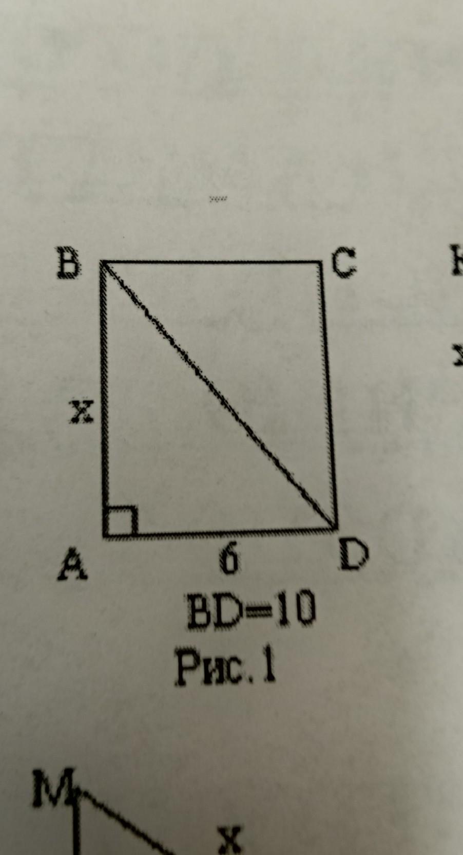 Используем теорему пифагора ( квадрат гипотенузы равняется сумме квадратов катетов) x^2 + 6^2 = 10^2 X^2 = 100-36 = 64 x = sqrt64 = 8