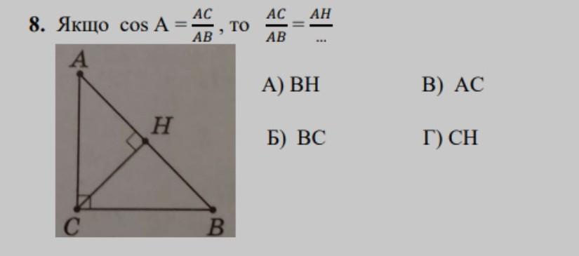 оскільки cosA=AC/AB і далі йде порівняння ас/ав =ан/.. то тут мабуть порівнюють косинуси кута А трикутників авс і анс то відповідь буде АС