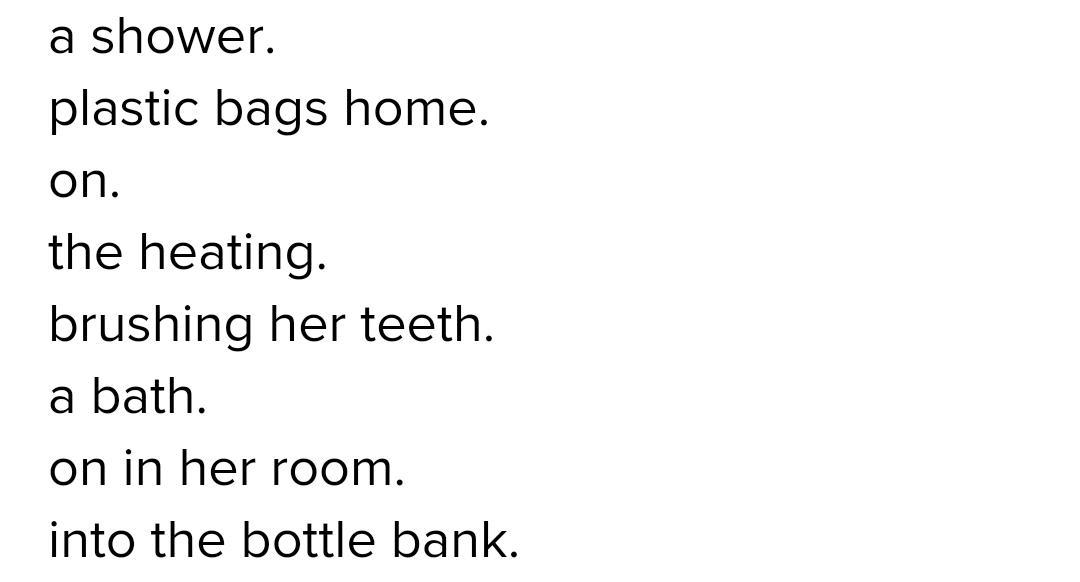 3) Она никогда не кладет бутылки в банк для бутылок.