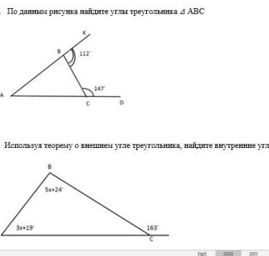 Внутренние углы треугольника не смежные с внешним,в сумме равны его градусной мере