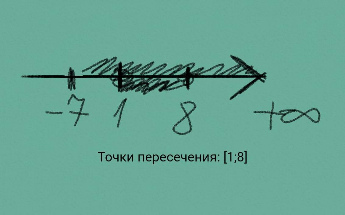 Общий промежуток - это промежуток, где по обе стороны заштриховано.