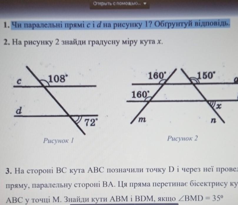 1 , так, якщо при перетині двох прямих січною виконується принаймні одна з умов 1)внутрішні різносторінні кути рівні 2) сума внутрфшніх односторінніх кутів дорівнює 180 градусів 3) відповідні кути рівні , то дані прямі паралельні