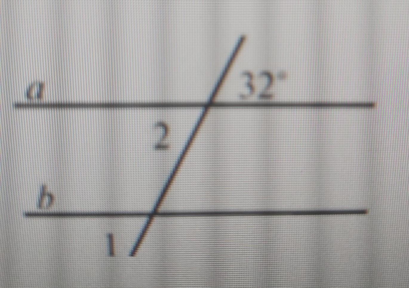 1. Угол 1 находится противоположно к углу 32 градуса, пересекаясь с плоскостью b, по этому он равен тоже 32 градусам.