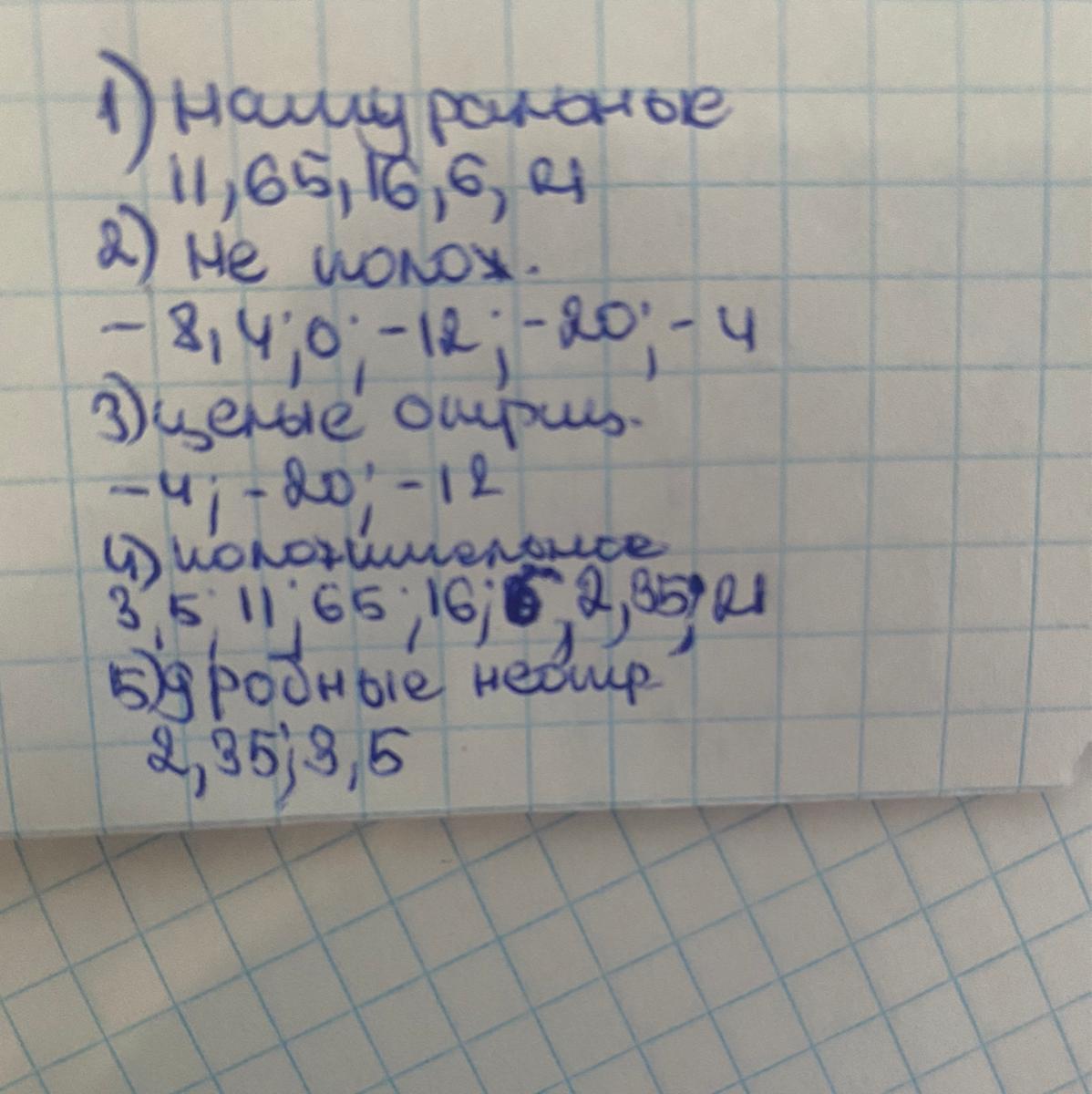5 2. Выбери среди них 3,5 -4 11, 65, 16 -20 2,35; 6; 0; -12;; -8,4 21 :. а 1) натуральные, 4) не положительные ) 5 целые отрицательные ) 3) положительные 6) дробные неотрицательные