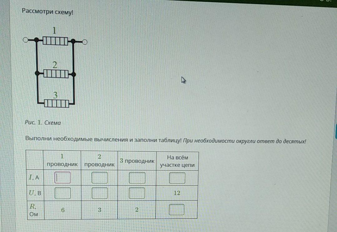 ну и токи 1. 12/6=2А 2.12/3=4А 3.12/2 6А