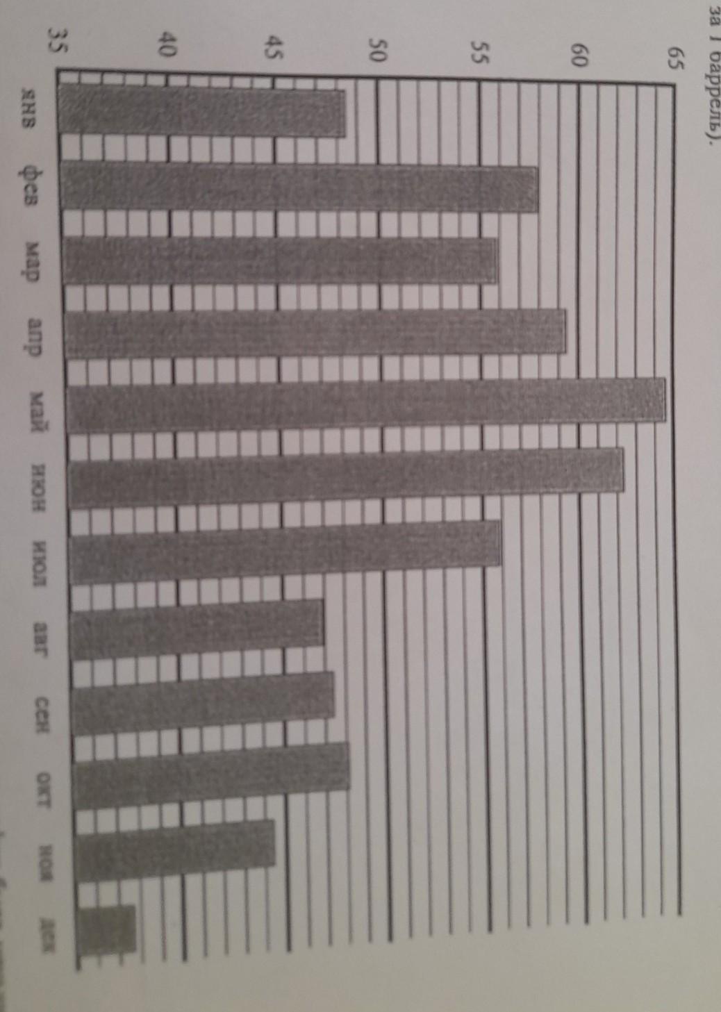 На диаграмме показана средняя цена нефти в 2015 году по месяцам (в долларах США за 1 баррель).