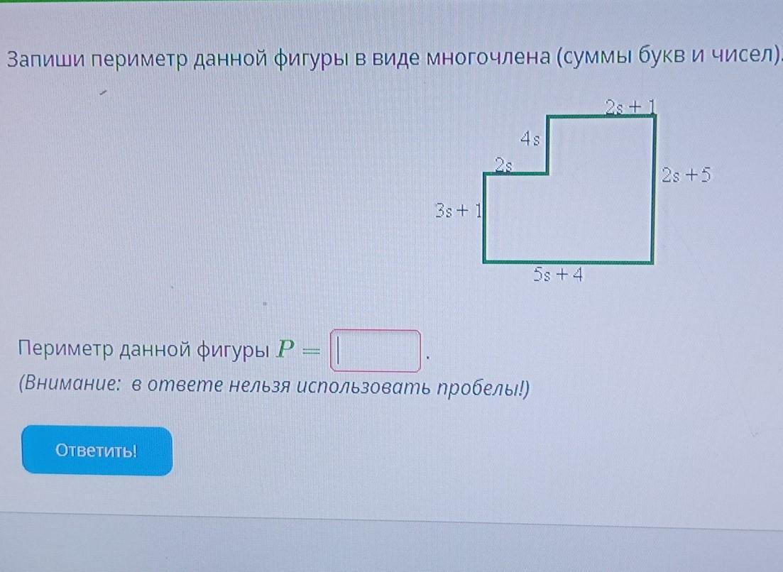2s + 1 + 4s + 2s + 3s + 1 + 5s + 4 + 2s + 5 = 18s + 11 дальше сложить невозможно