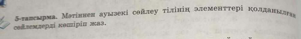 5-тапсырма. Мәтіннен ауызекі сөйлеу тілінің элементтері қолданыла сөйлемдерді көшіріп жаз.