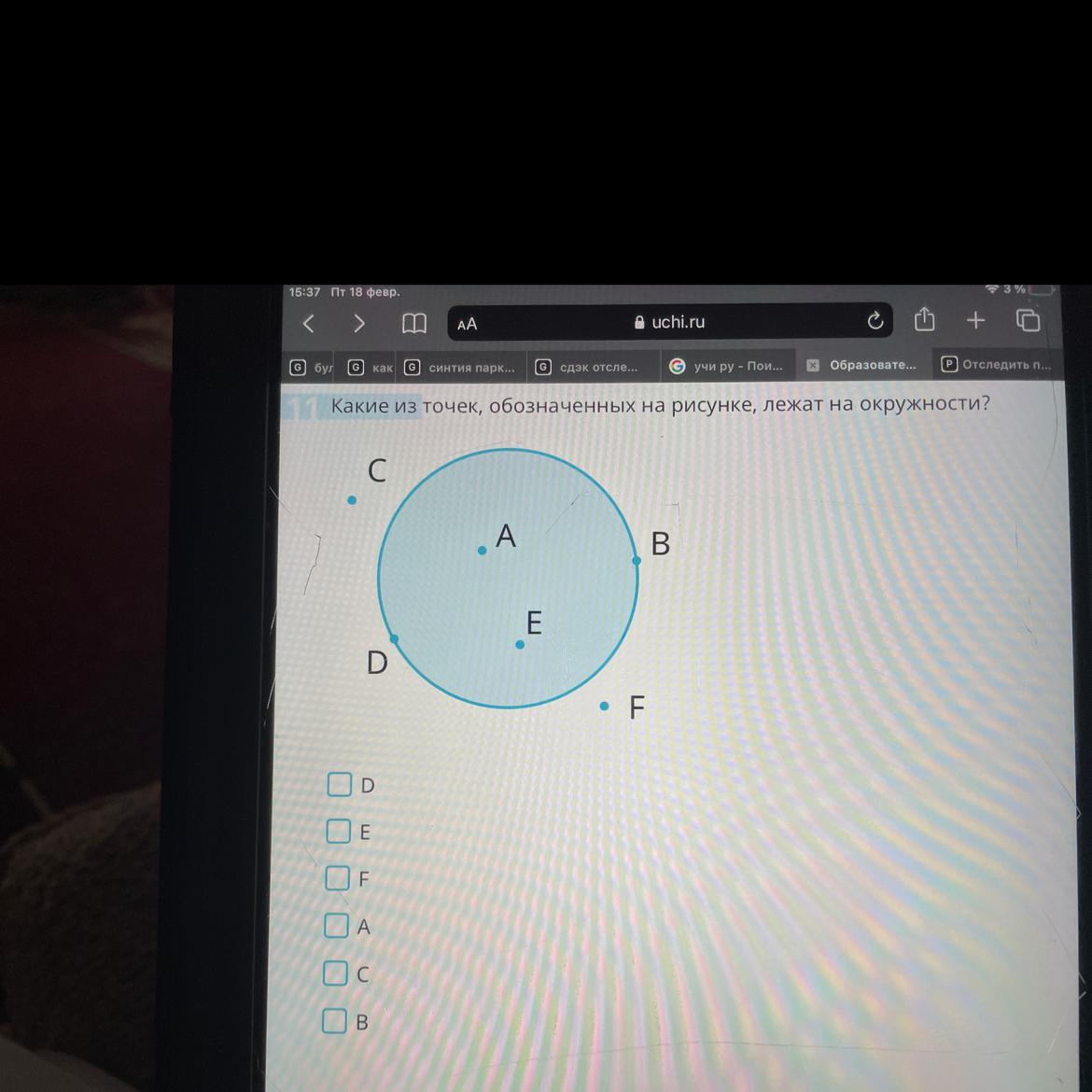Какие из точек, обозначенных на рисунке лежат по окружности?