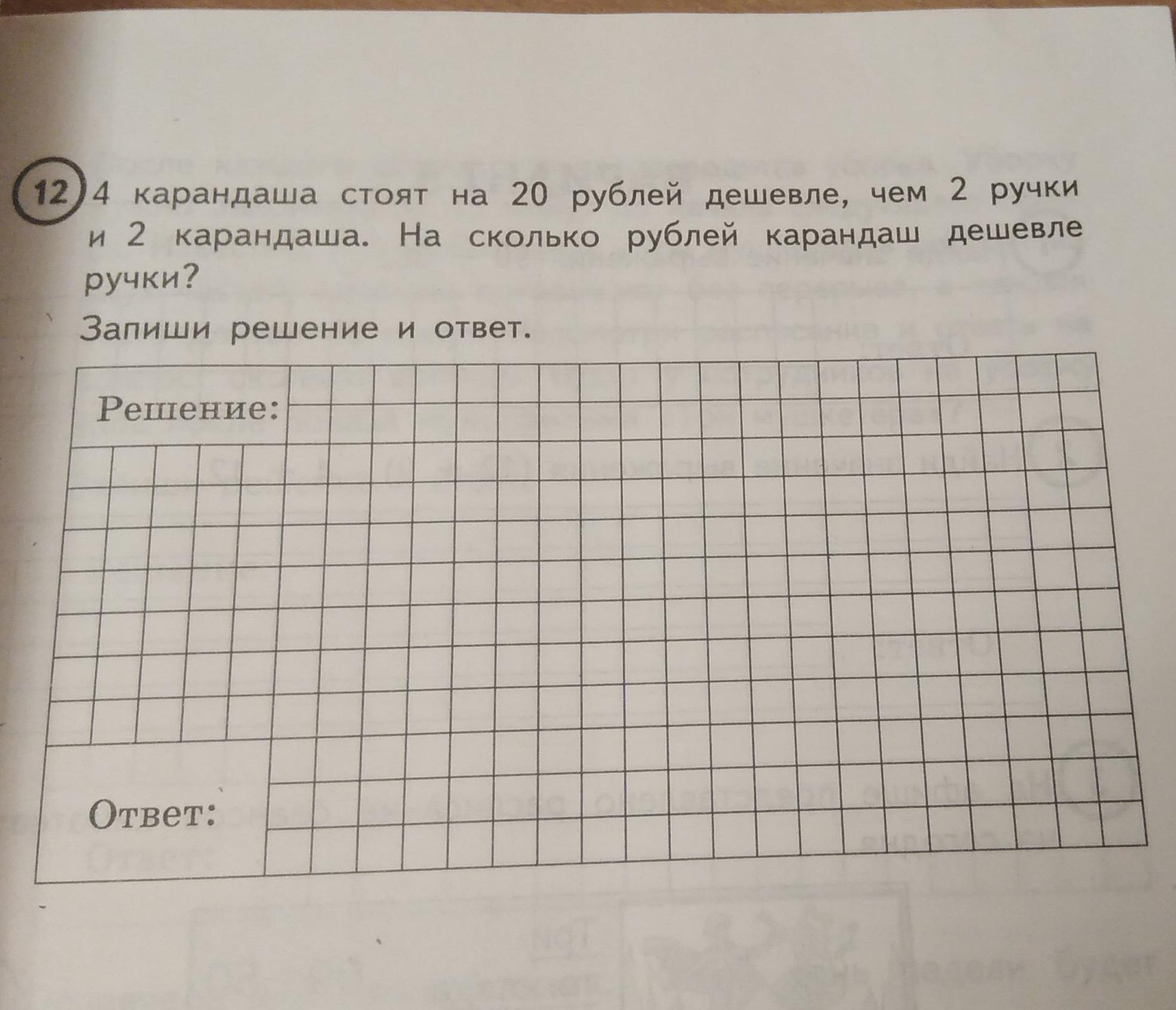 2 карандаша стоит 10 рублей, 2 ручки стоит 10 рублей.