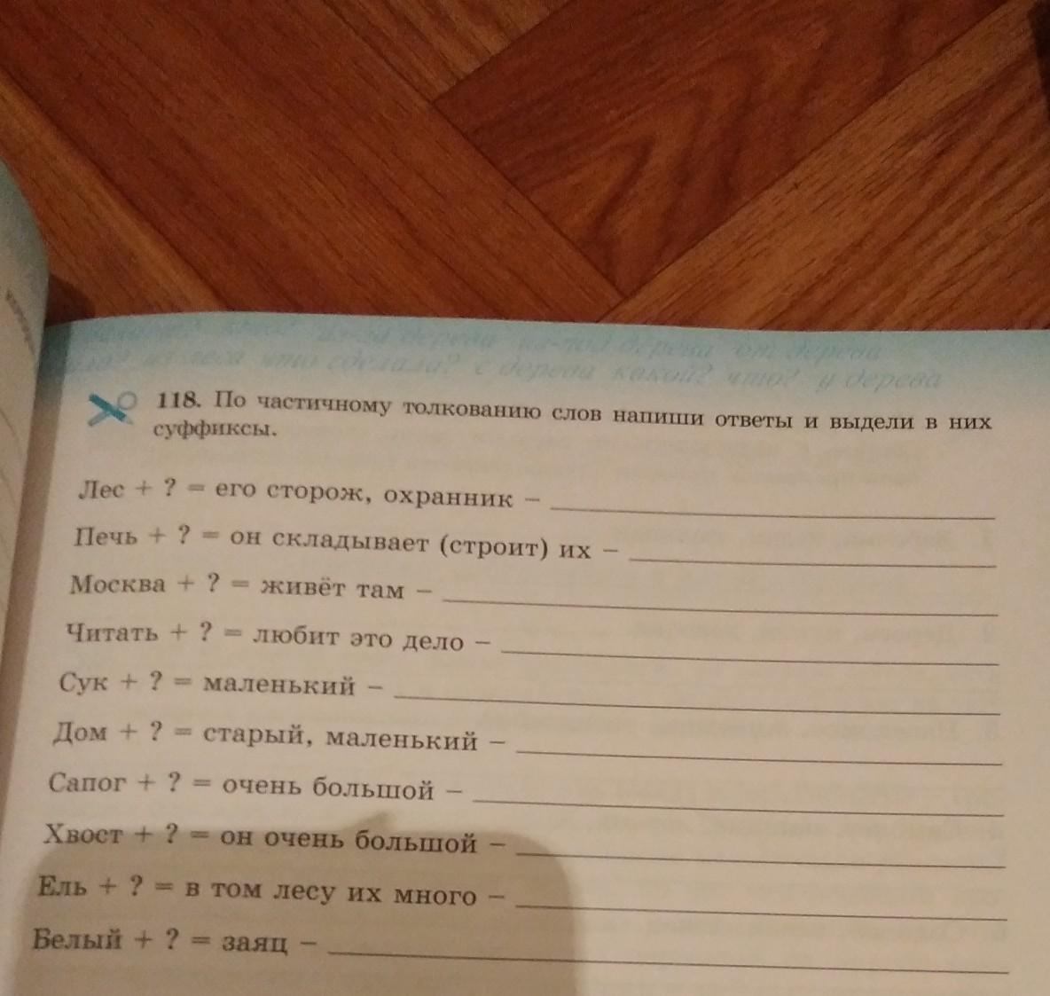 NOR о № 1, По кастичному толкованию слов напиши ответы и выдели в них . Лес + ? его сторож, охранник Печь + ? ее он складывает (строит) их Москва + ? = живёт там Читать + ? а любит это дело Сук + ? = маленький Дом + ? = старый, маленький Сапог + ? = очень большой е Хвост + ? - он очень большой Ель + ? - в том лесу их много Белый + ? = заяц
