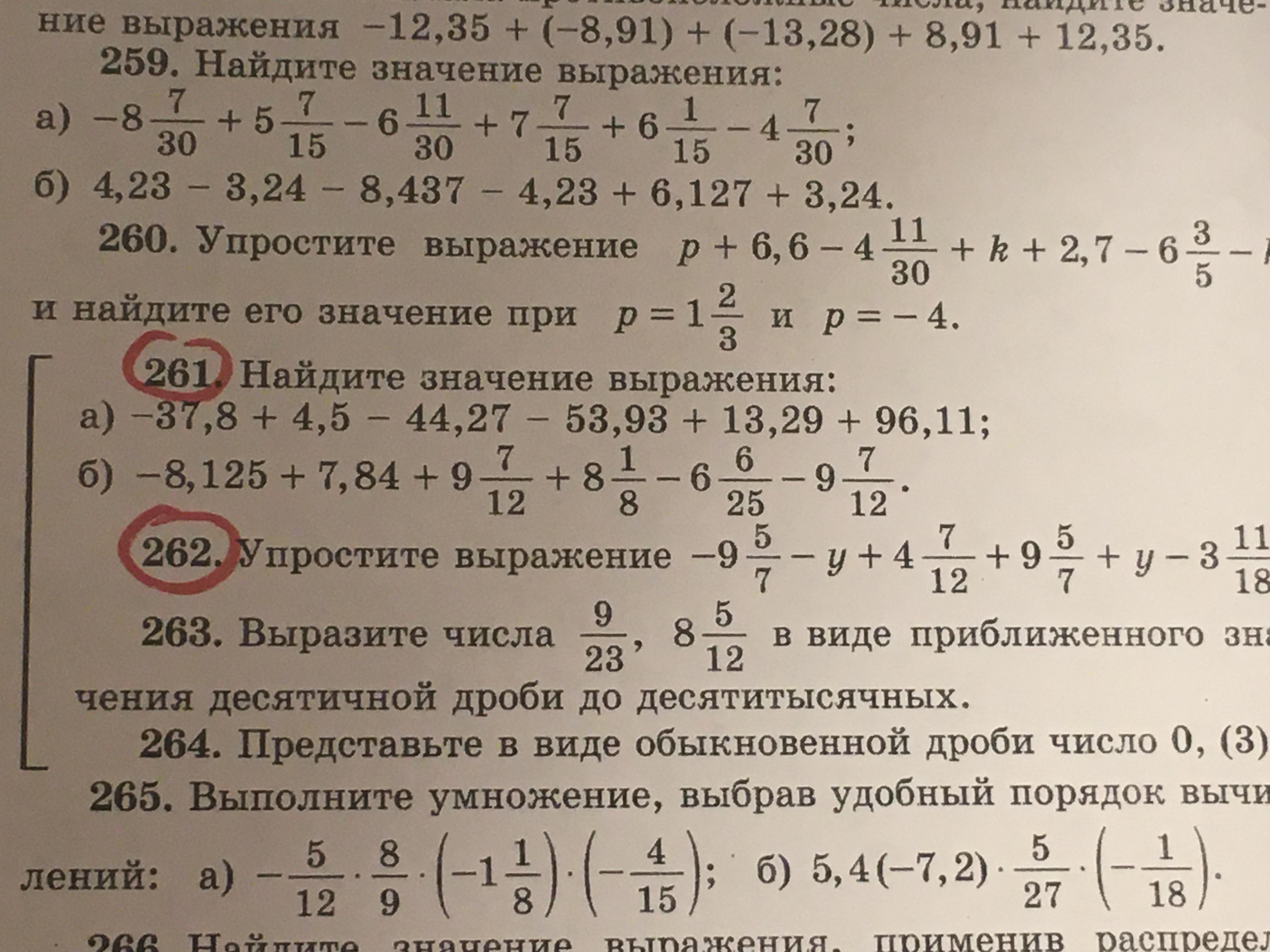 261 Б) -8,125+7,84+9.7/12+8.1/8-6.6/25-9.7/12=-65/8+196/25+65/8-156/25=196/25-156/25=8/5