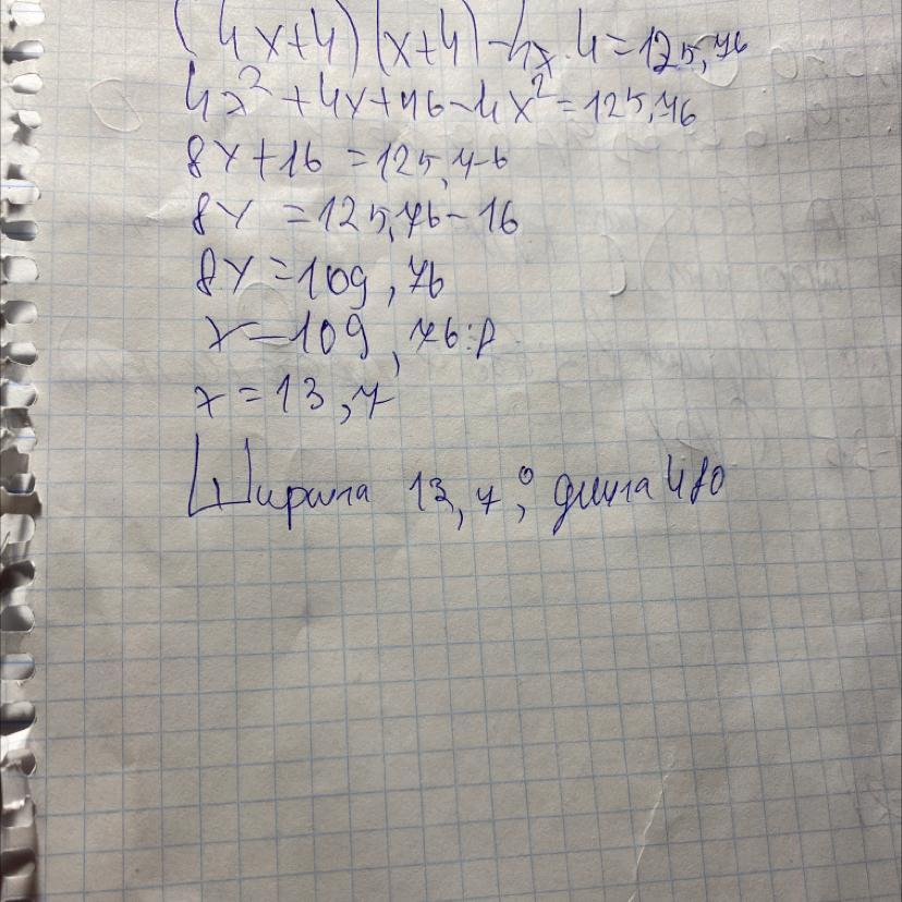 4х²+ 4х+ 4х+ 16 - 4х²=125,76