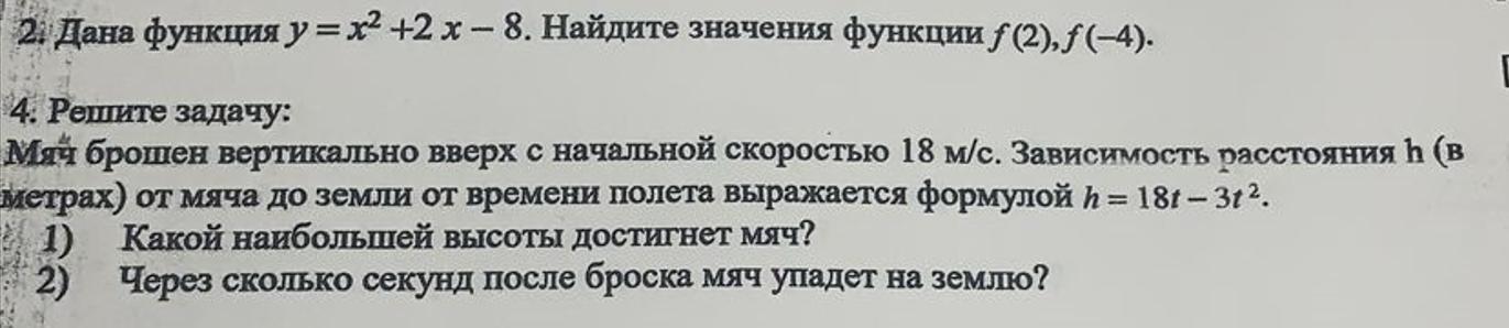 Дана функция: y=x²+2x-8. Найдите значения функции f(2), f(-4).