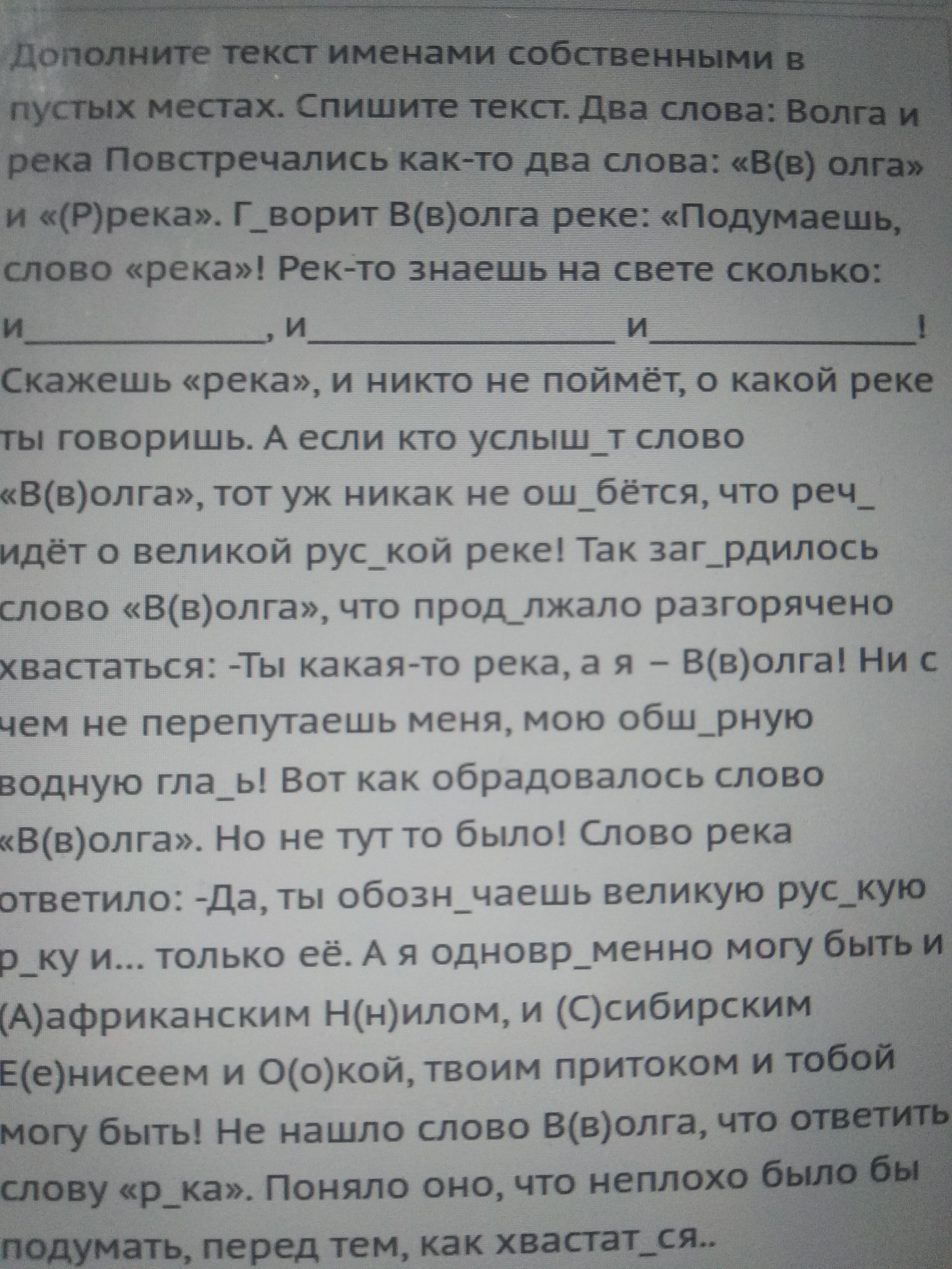 УслышИт, ошИбется, речЬ, русСкой, загОрдилась, продОлжало, обшИрною, глаДь, обознАчаешь, руСскую, рЕку, одноврЕменно, африканским Нилом, сибирским Енисеем, Окой, хвастаться