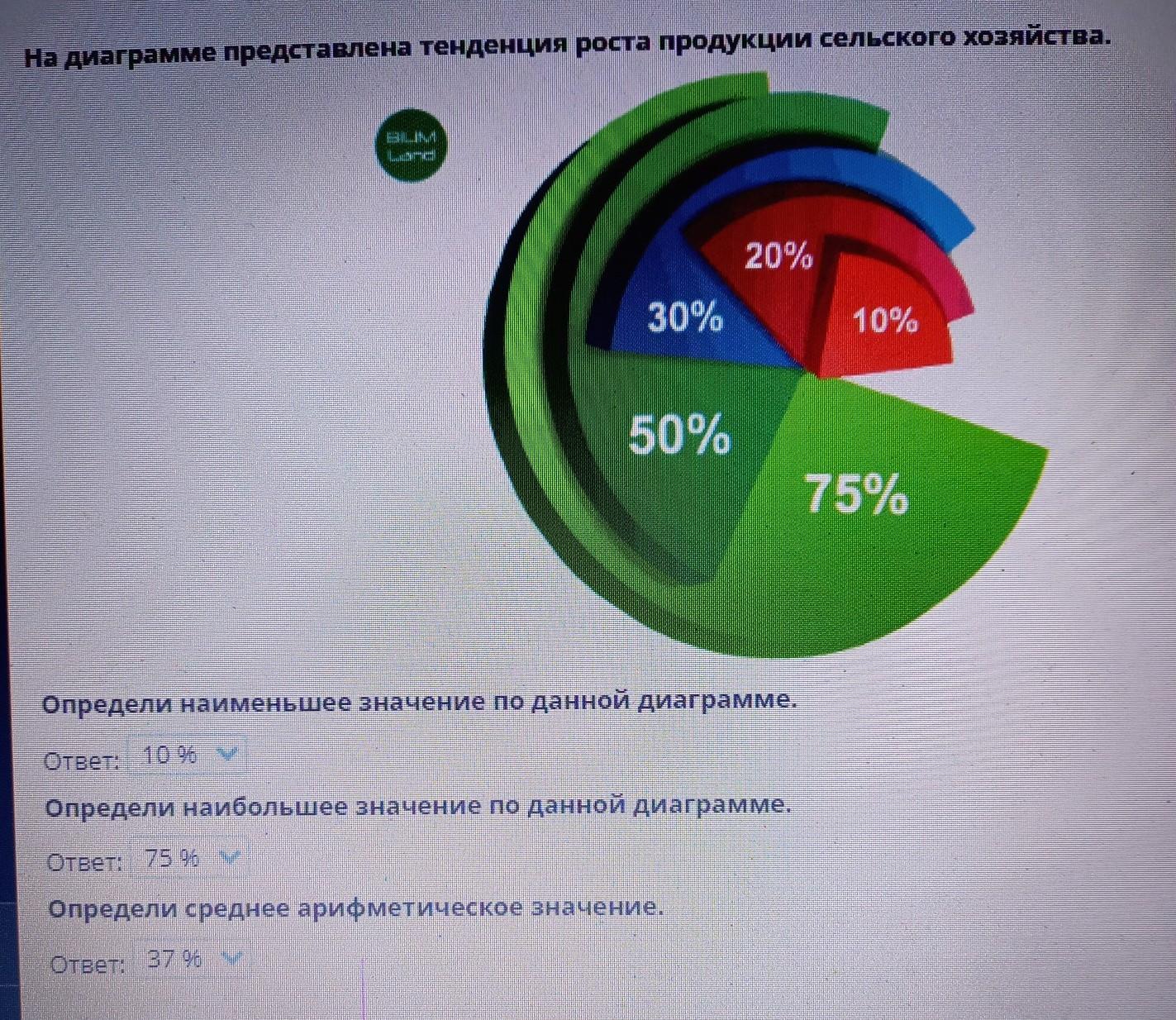 Определи наименьшее значение по данной диаграмме. ответ 10%, 20%, 30%, 50%, 75%.