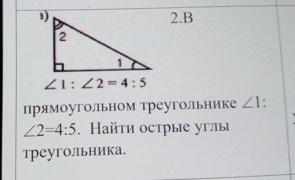 угол 1 + угол 2 = 180 - 90 = 90 градусов и у нас получается уравнение 4х + 5х = 90 градусов