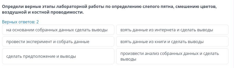 Определи верные этапы лабораторной работы по определению слепого пятна, смешению цветов,