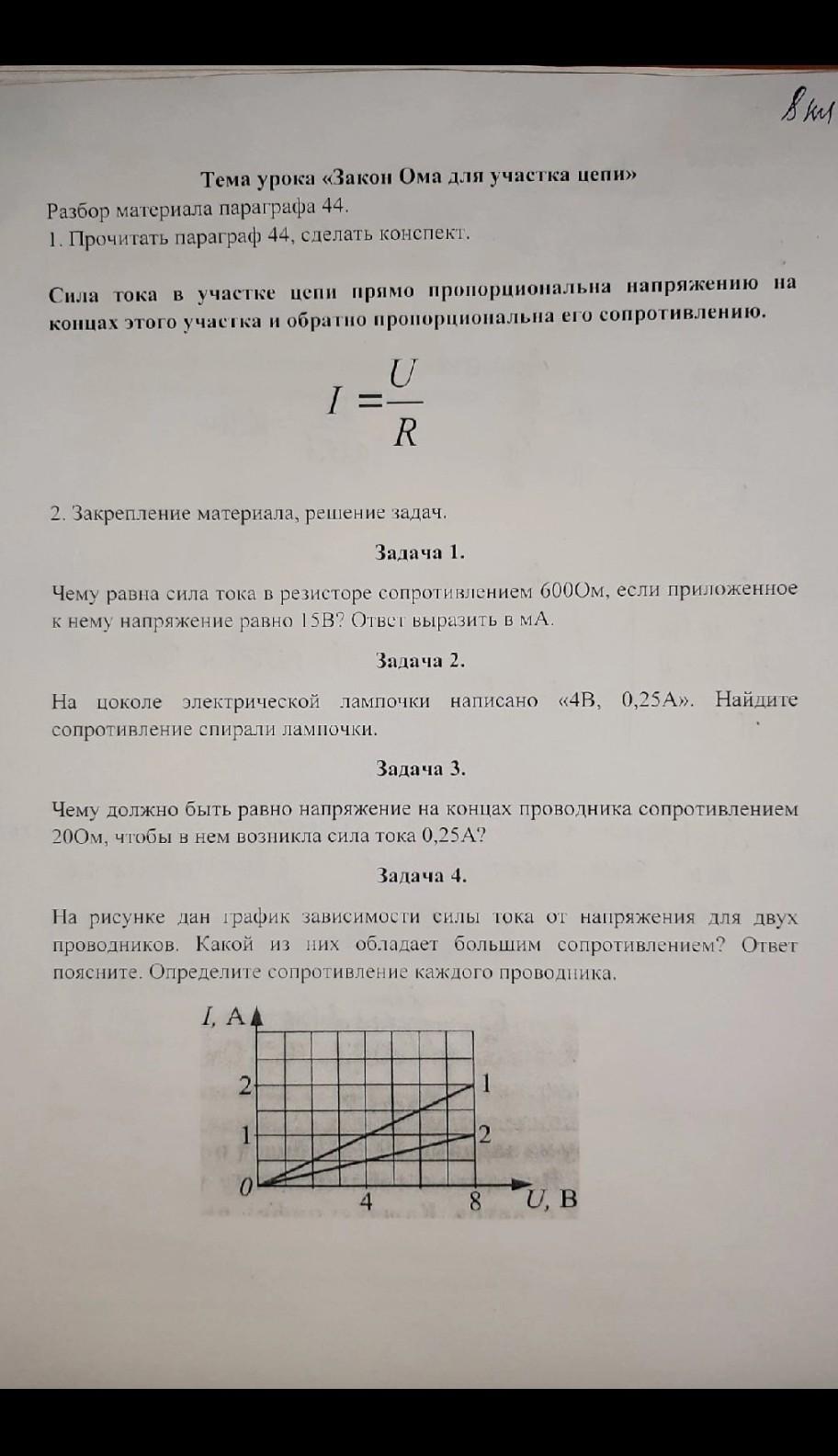 3 задача) по формуле получаем, что напряжение равно 20ом×0.25а=55вольт