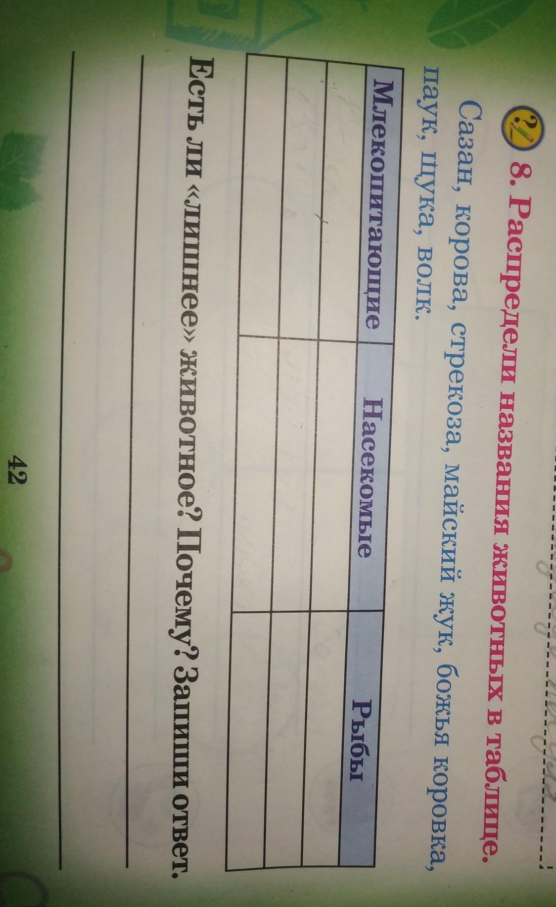 Распредели названия животных в таблице.