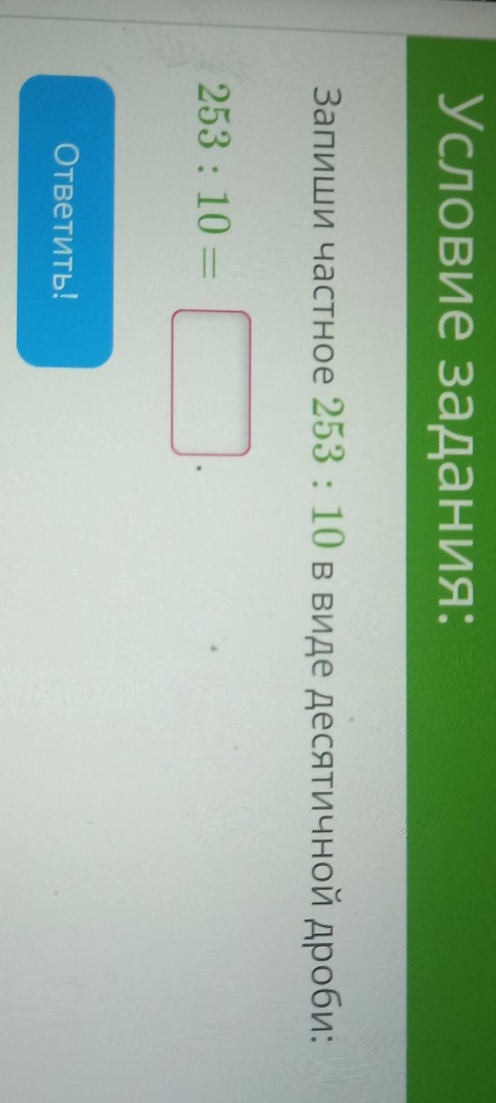При делений на 10 отбрасываем один знак назад,если делимое ,в данном случае - 253 ,было бы круглым,т.е. с 0 в конце , например: 10 , 20 , 30
