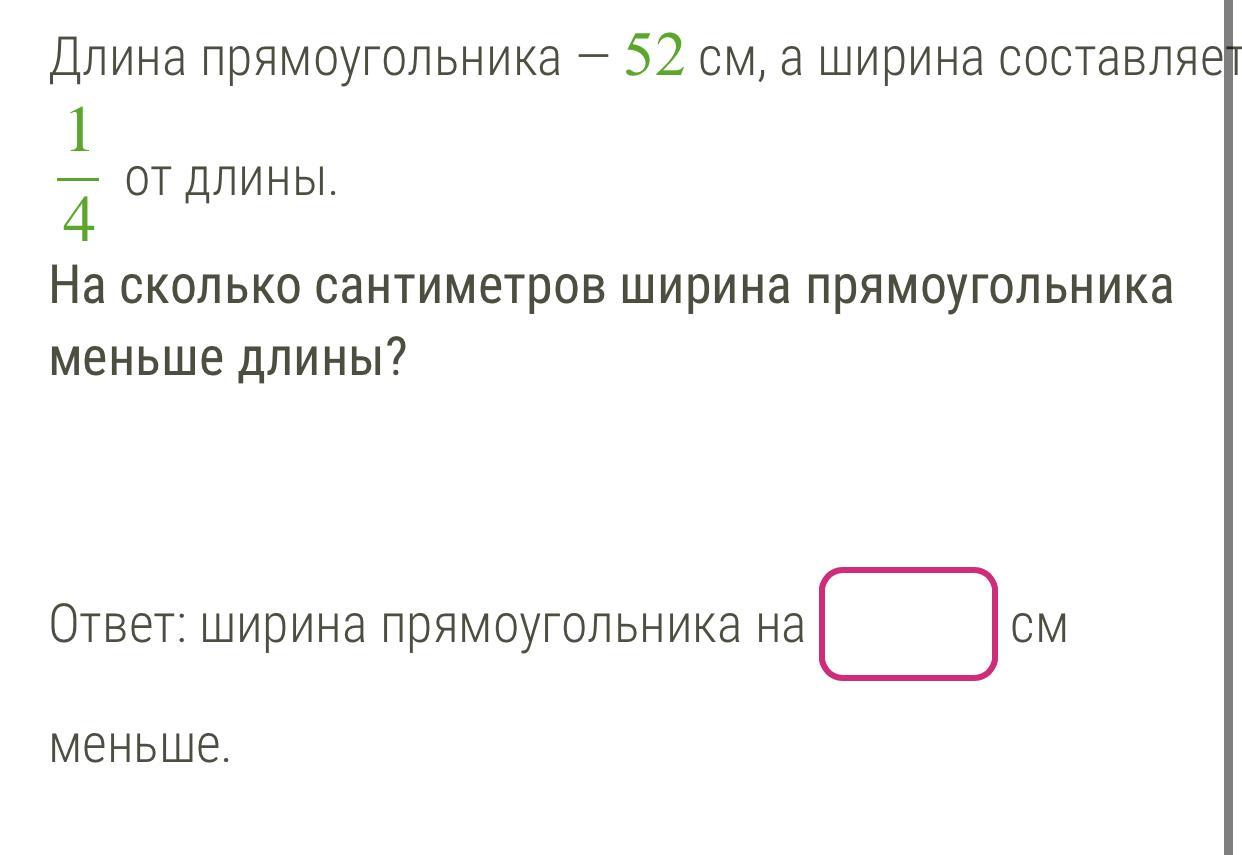 1 - 52:4*1 = 13(см) - ширина