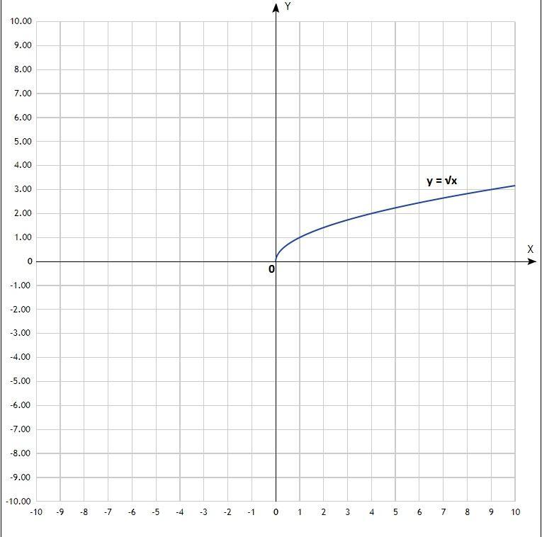 Запись: D(y) = x∈R : x >=0, или: D(у): х∈[0; +∞).