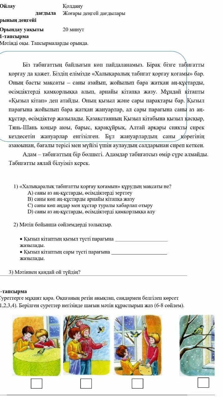 •... саны аз аң-құстар, өсімдіктер жазылады.