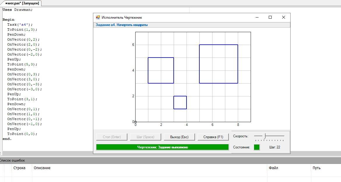 Не знаю, требуется ли там по условиям проверки возврат чертёжника к нулевым координатам. Я его сделал на всякий случай, так даже красивее рисунок. Если переход не нужен- удалите предпоследнюю строку - ToPoint(0,0);