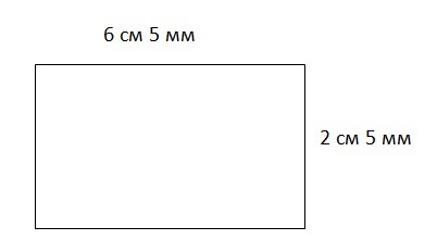 чертим прямоугольник со сторонами: длина 6 см 5 мм см и ширина 2 см 5 мм см