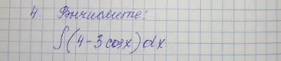 Int(4)dx -3*Int(cos(x))dx = (4х + C1) - 3*(sin(x) + C2) = 4x - 3*sin(x) + (C1 - 3*C2) = 4x - 3*sin(x) + (C1 - C3) = 4x - 3*sin(x) + C