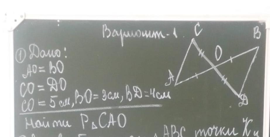 угол О треугольника АОС и угол О треугольника ВОD, вертикальные, то АС=ВD(первый признак равенства треугольников)
