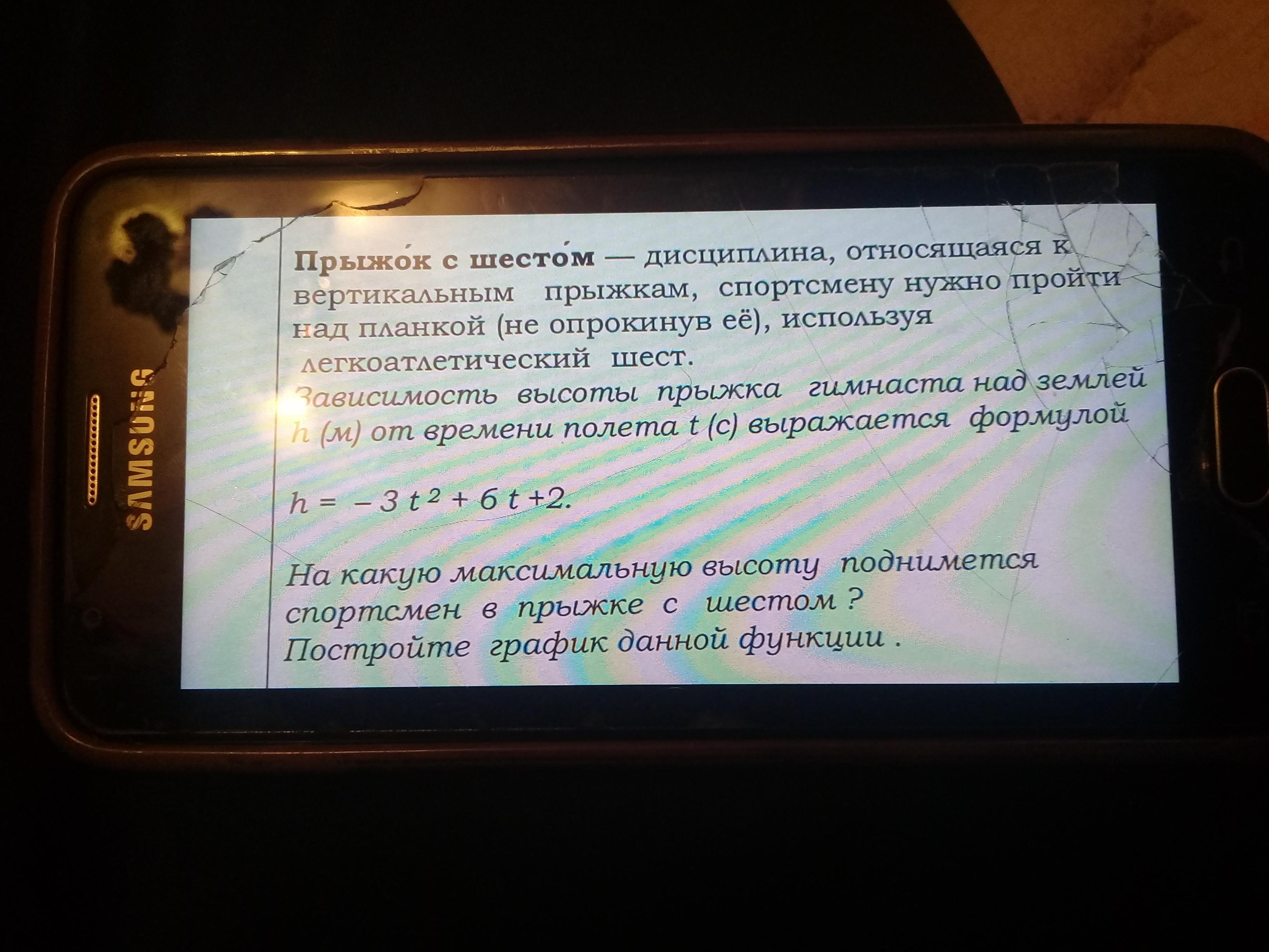 h=0 (наземле) , -3t²+6t+2=0 , D=36+24=60, t₁≈-0,3, t₂≈2,3