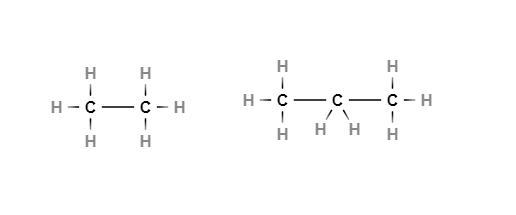 запишіть повні та скорочені формули насичених вуглеводнів, молекули яких містять два і три атоми карбону.