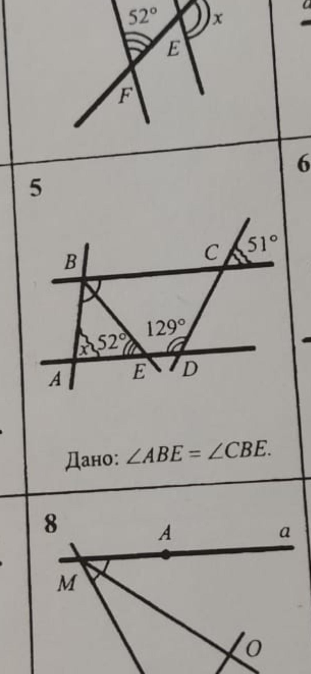 Тогда угол СВЕ=АЕВ=52 градуса (накрест лежащие)