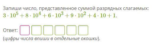 3*100000 + 8*10000 + 6*1000 + 9*100 + 4*10 + +1=300000+80000+6000+900+40+1 = 386941
