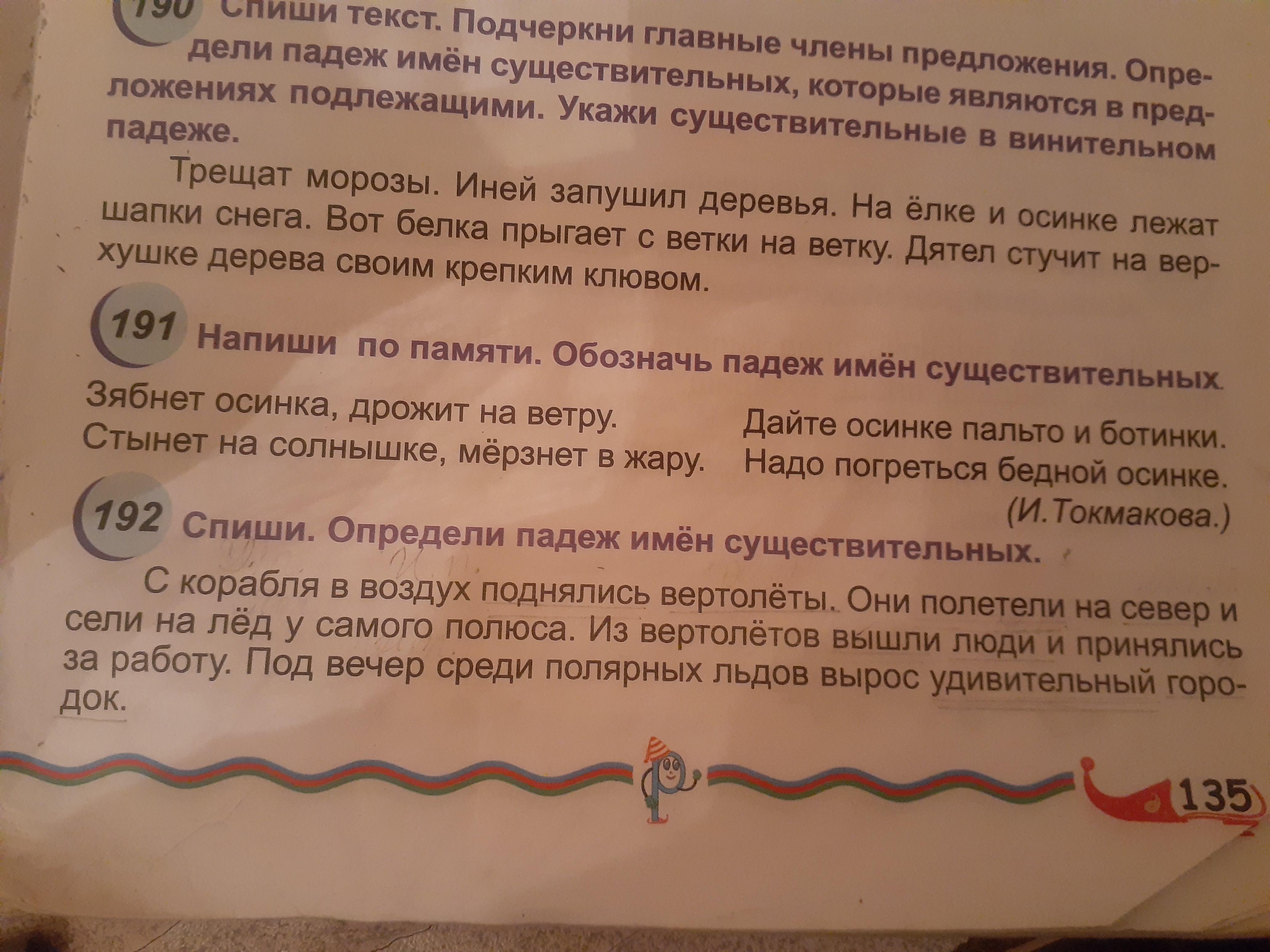 корабля(р.п) воздух (в.п) вертолёты( в.п) север (в.п) лед(в п) полюса (р.п) вертолётов(р.п) люди (и.п) работу(в.п) вечер(в.п) льдов (р.п) городок(в.п)