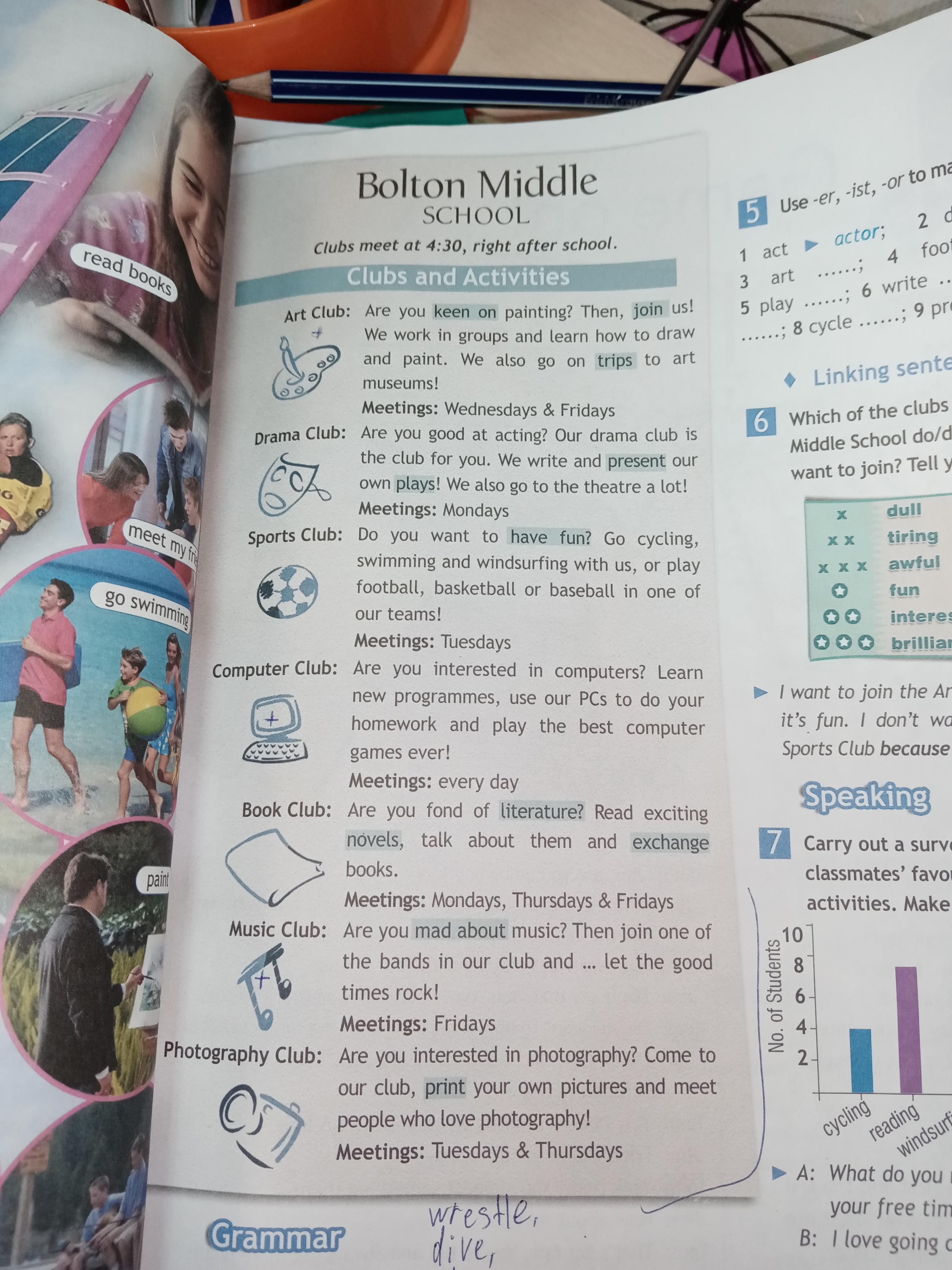 3 in drama club you can write and present your own plays, you can also go the theatre a lot