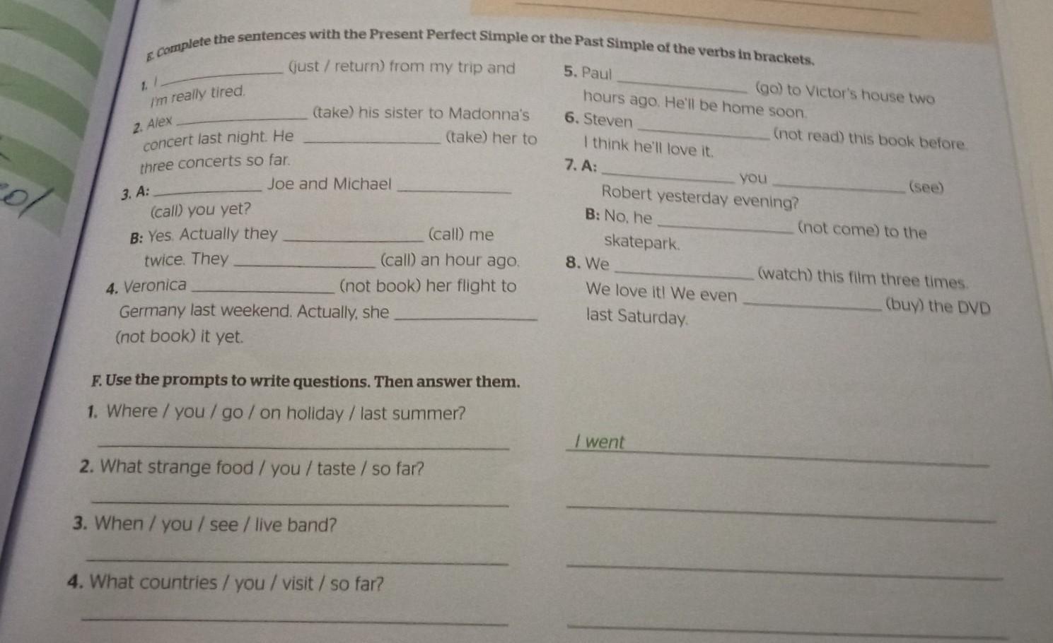 F. 1. Where did you go on holiday last summer? - I went to see my relatives.