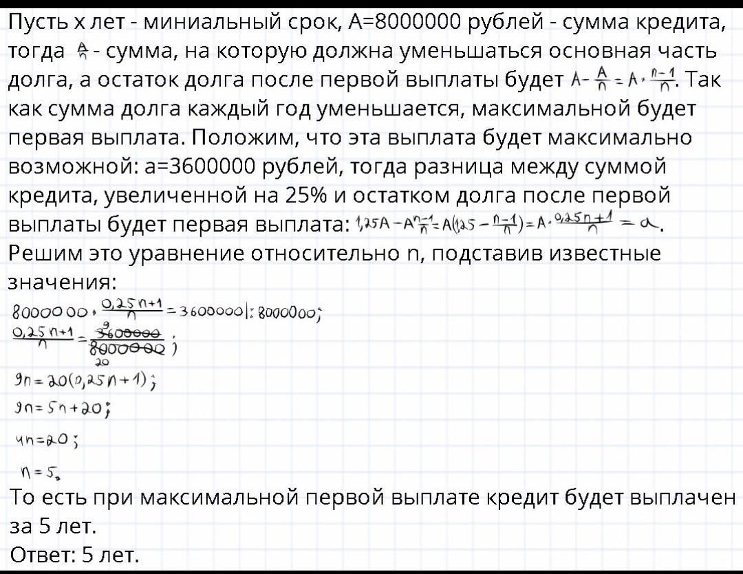 долга на июль предыдущего года. На какой минимальный срок следует брать кредит, чтобы наибольший годовой платёж по кредиту не превысил 2,8 млн рублей?