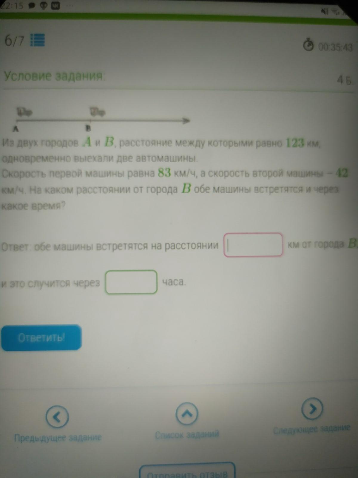 Поскольку они встретились, а расстояние между 2мя городами 123км, то составляем ур-е: