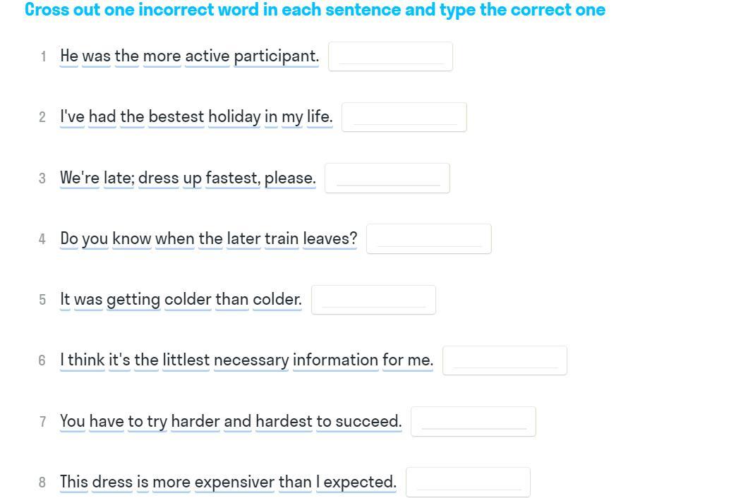 Cross out one incorrect word in each sentence and type the correct one.