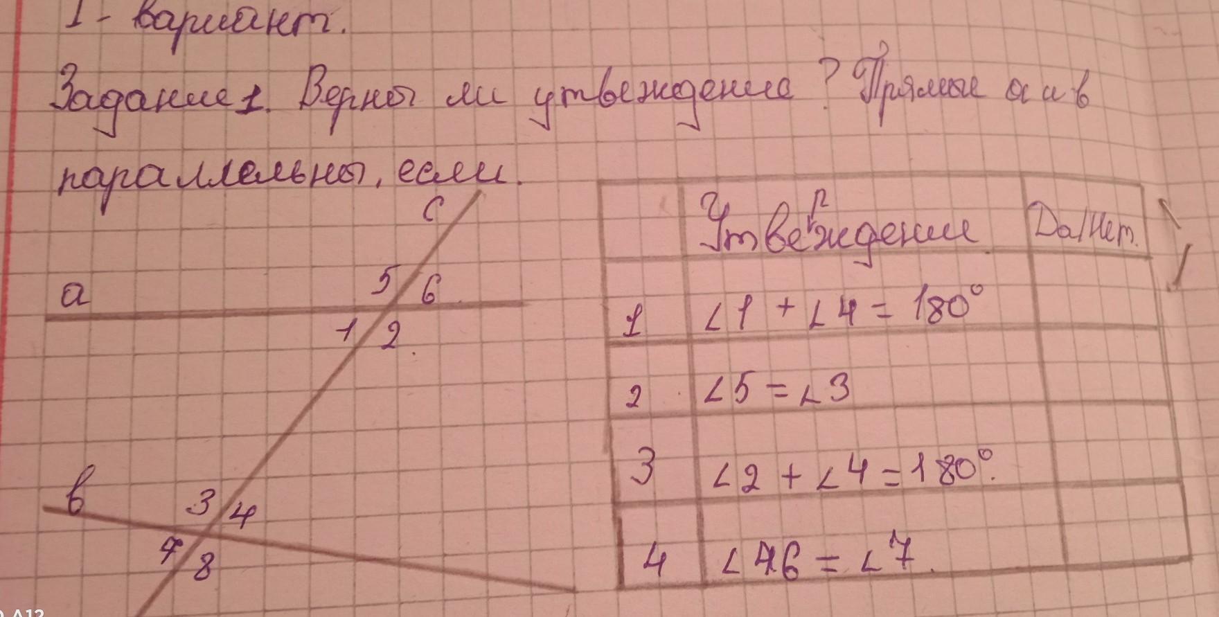 4. Да (это накрест лежащие углы, если они равны, то прямые параллельны)