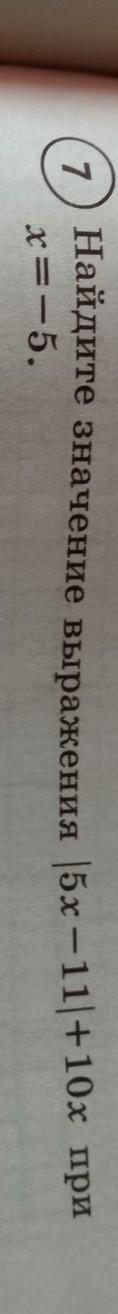 |5x - 11| + 10x = |5*(-5) - 11| + 10*(-5) = |-36| + (-50) = 36 - 50 = -14