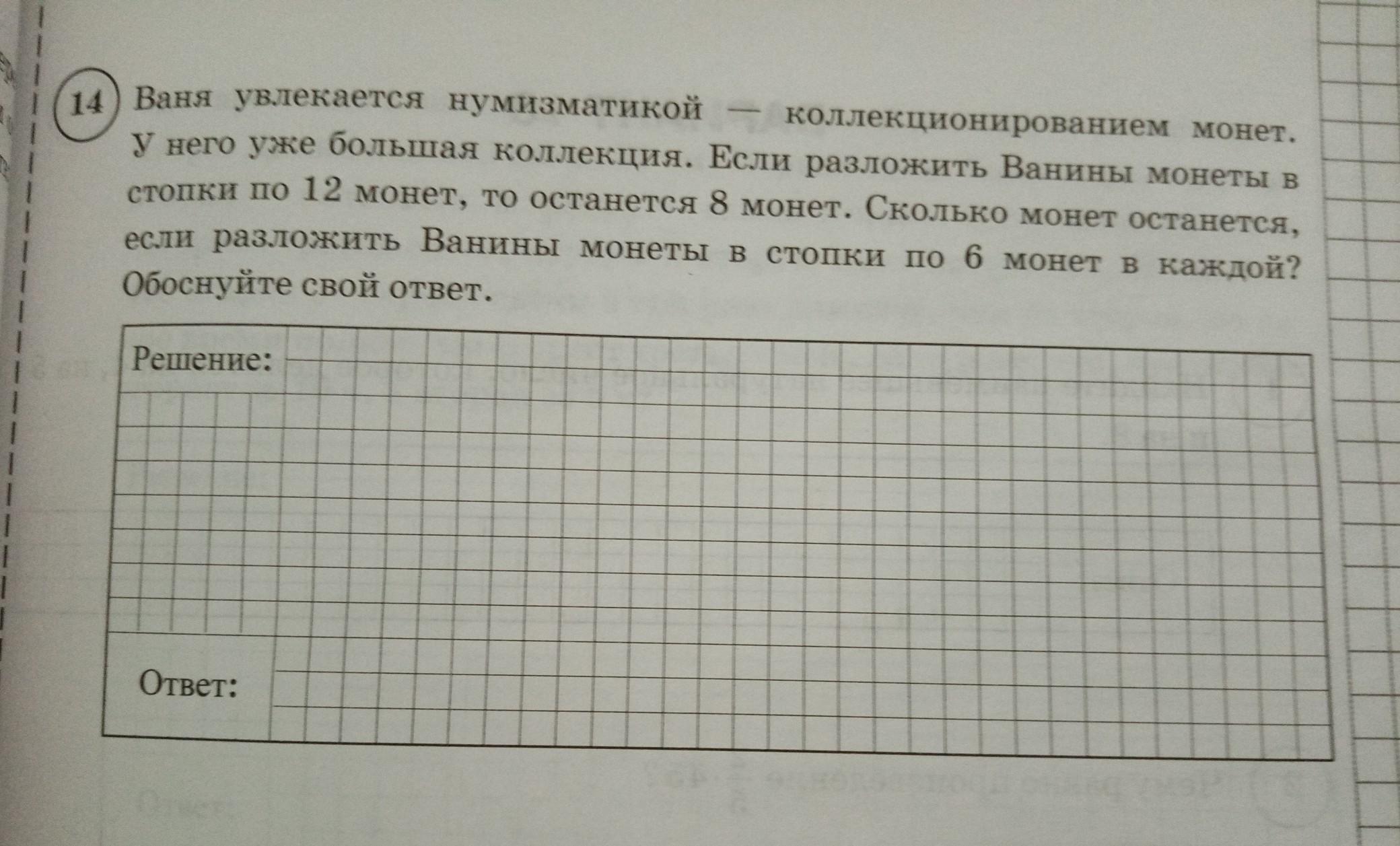 То есть если разложить Ванины монеты на стопки по 6 монет в каждой, останутся 2 монеты