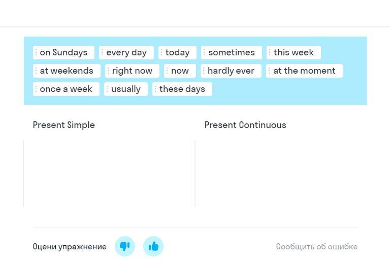 Так Present Simple: on Sundays, every day, sometimes, at weekends , once a week, usually, hardly ever