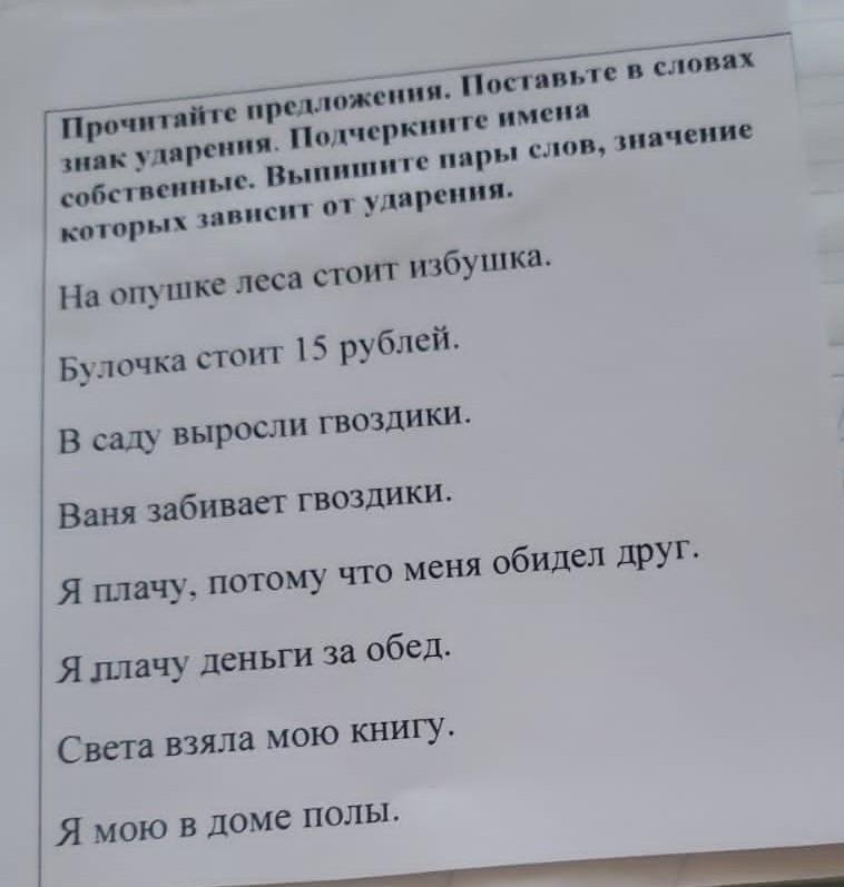 Слова, значение которых зависит от ударения: стоит, гвоздики, плачу, мою