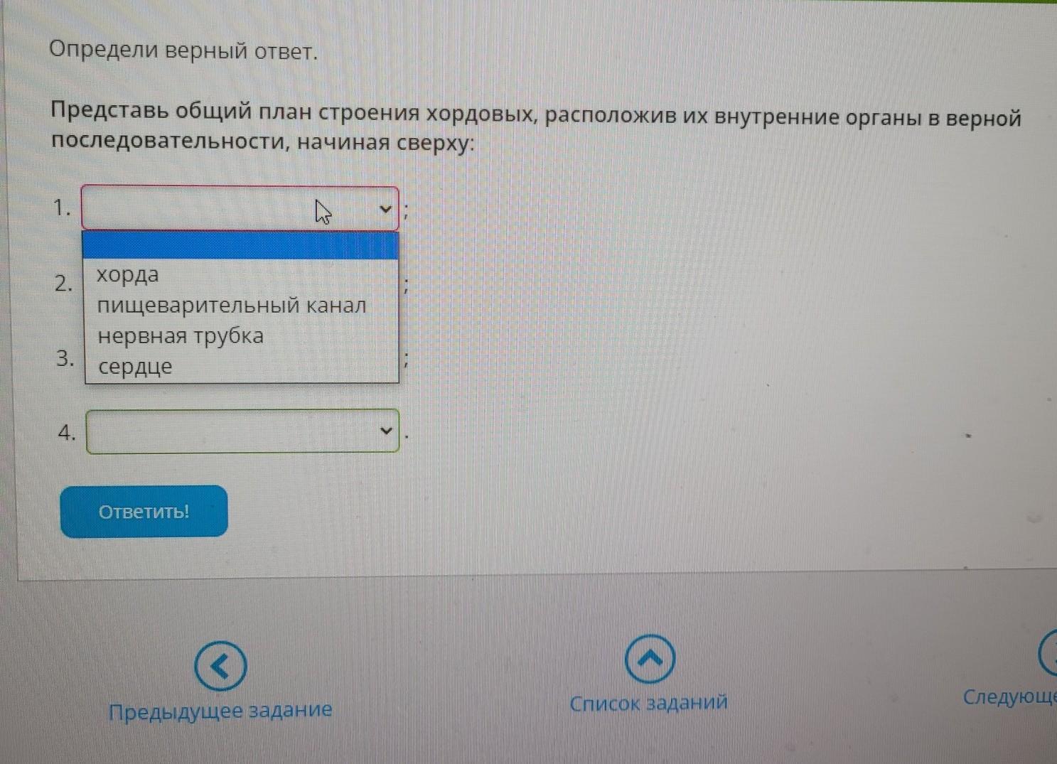 Представьте общий план строения хордовых расположив их внутренние органы в верной последовательности начиная сверху